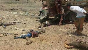 The crime resulted in a total of 23 killed civilians as well as several others wounded after a US-backed Saudi airstrike hit their car in Mawza’a district, western Taiz province.
