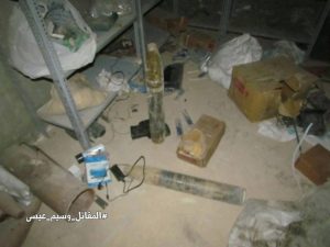 The bunker contained hundreds of shells, improvised explosives and manufacturing units intended for booby traps and hell cannons for the usage against the SAA’s 4th Mechanized Division and 105th Brigade of the Republican Guard.