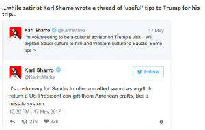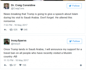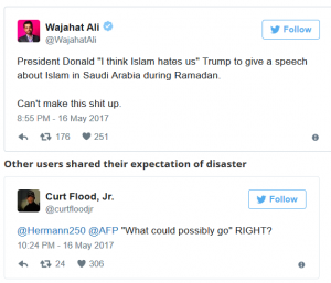 Trump to give inspiring speech on Islam in Saudi Arabia. Twitter can’t help but laugh
