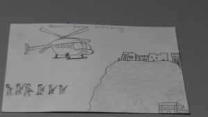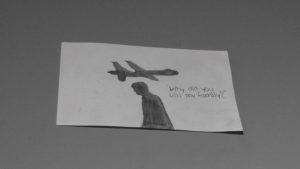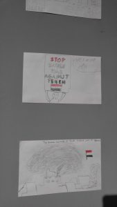 A number of students wrote messages of solidarity on bricks, which became part of “the wall.” Others drew pictures of homes, mosques and hospitals bombarded by US-Saudi airstrikes. One student drew Yemeni soldiers marching into battle.