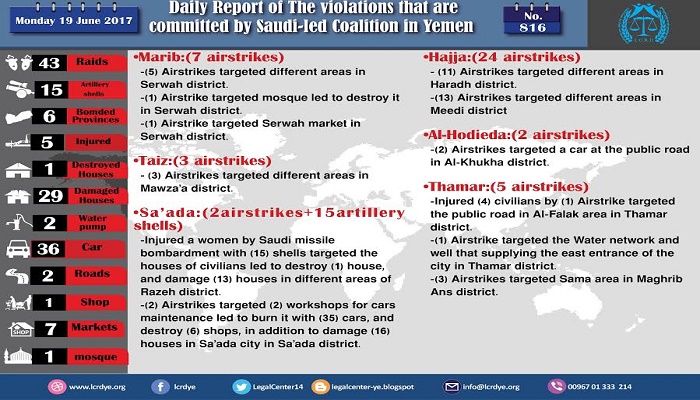 Saudi raids and crimes in June 19,2017 Last updated Jun 23, 2017 Share Continue Reading Share FacebookTwitterGoogle+ReddItWhatsAppPinterestEmailLinkedinTumblrTelegramPrint