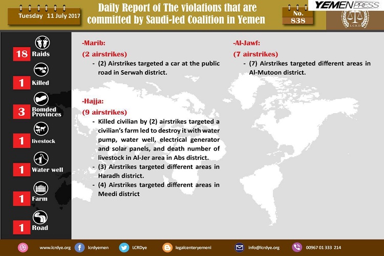 Saudi raids and crimes in July 11,2017 Last updated Jul 12, 2017 Share Continue Reading Share FacebookTwitterGoogle+ReddItWhatsAppPinterestEmailLinkedinTumblrTelegramPrint