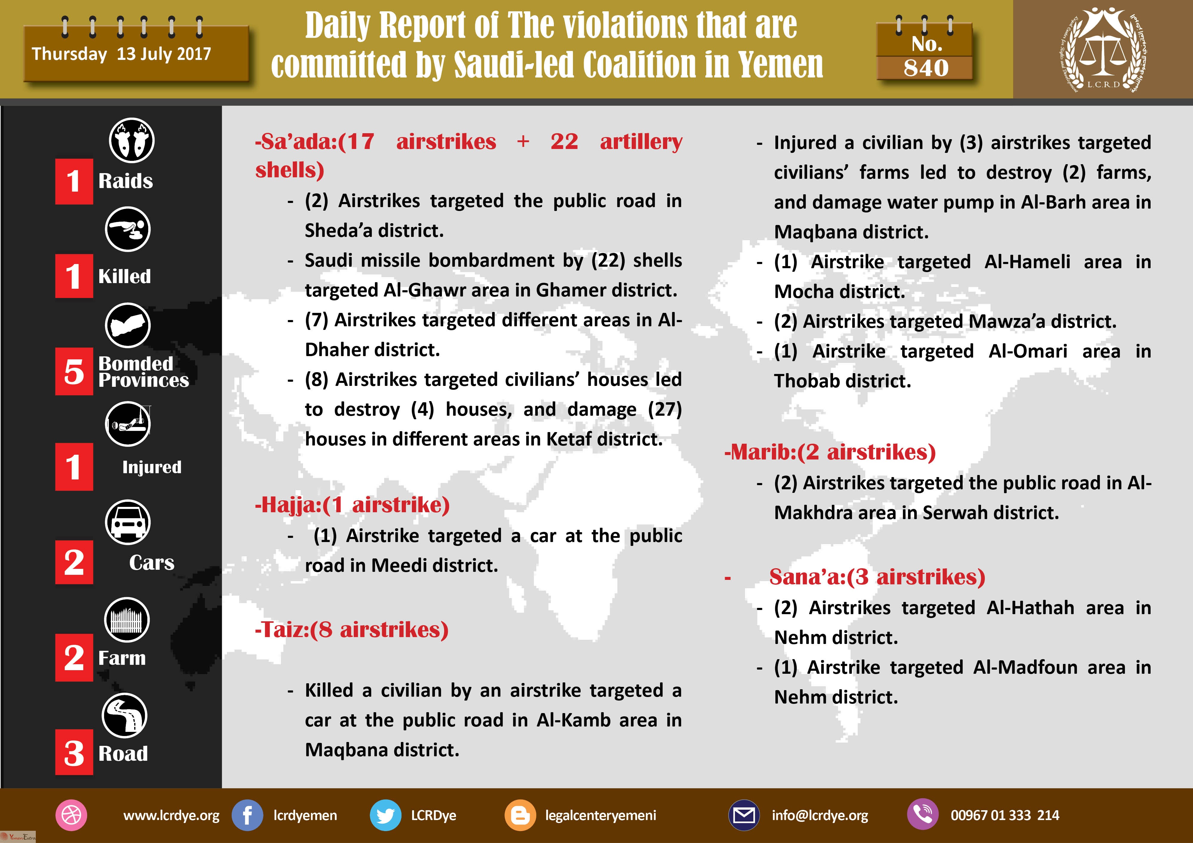 Saudi crimes and raids in July 13,2017 Last updated Jul 17, 2017 Share Continue Reading Share FacebookTwitterGoogle+ReddItWhatsAppPinterestEmailLinkedinTumblrTelegramPrint