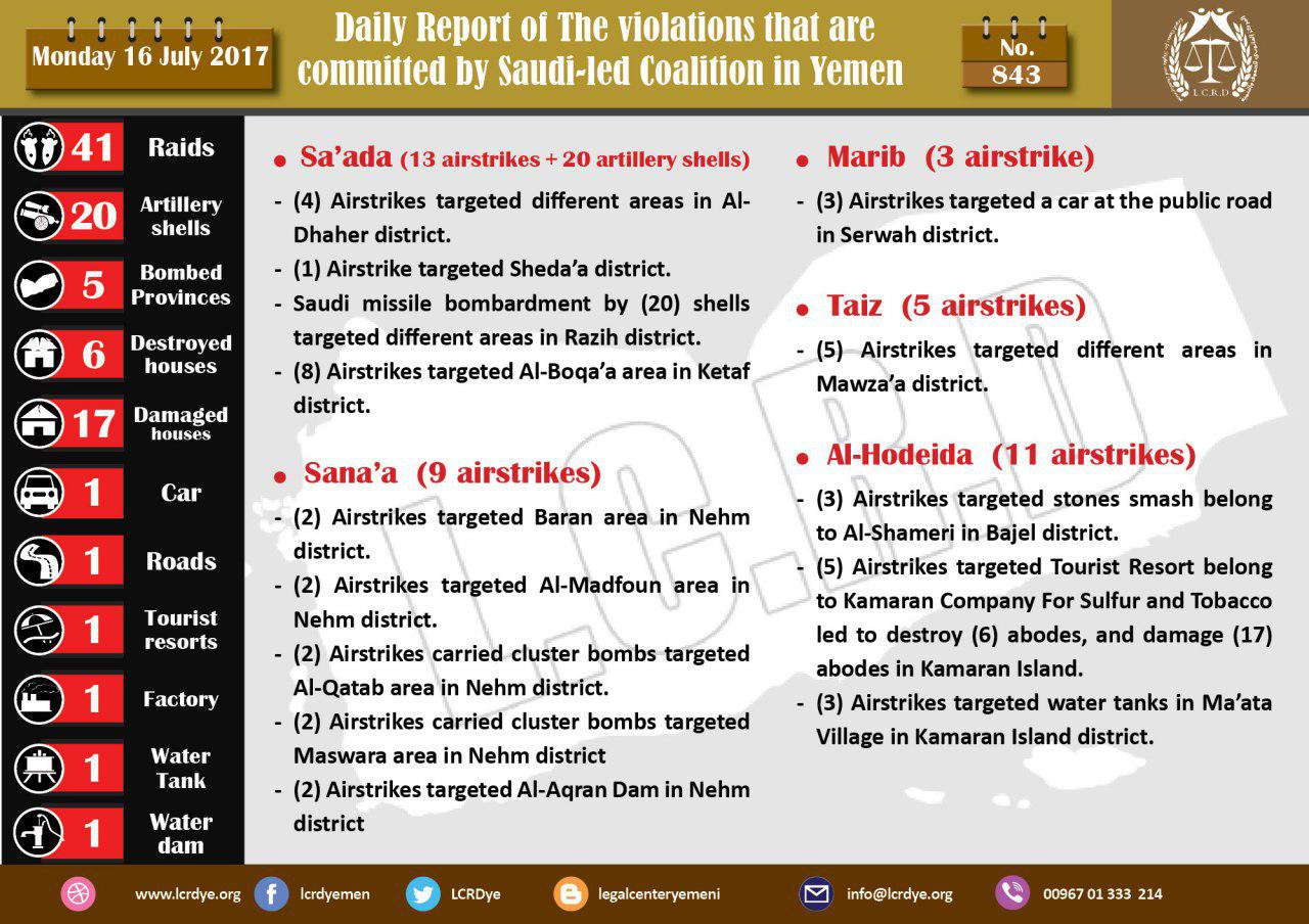 Saudi raids and crimes for July 16,2017 Last updated Jul 18, 2017 Share Continue Reading Share FacebookTwitterGoogle+ReddItWhatsAppPinterestEmailLinkedinTumblrTelegramPrint