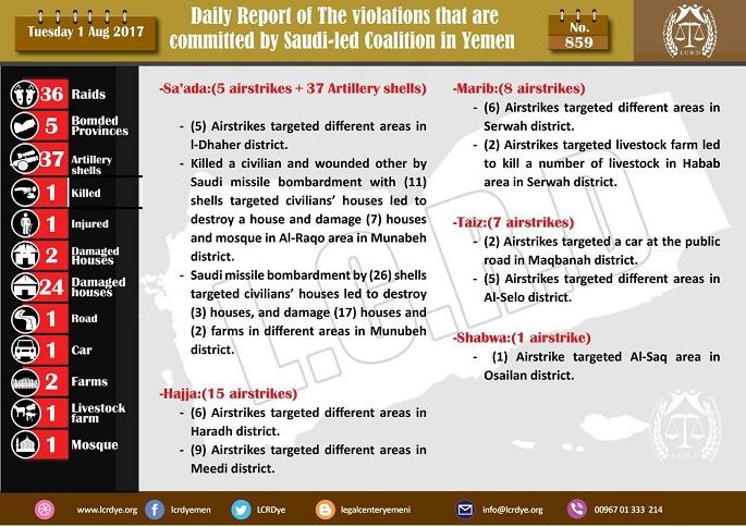 Watch Saudi crimes and raids against Yemen in August 1, 2017, during this info Last updated Aug 3, 2017 Share Continue Reading Share FacebookTwitterGoogle+ReddItWhatsAppPinterestEmailLinkedinTumblrTelegramPrint