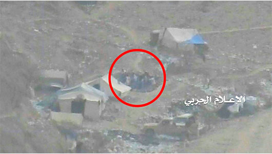 The pictures show the moment of targeting a gathering of a large number of the paid fighters, which led to the death and injury of a large number of them.