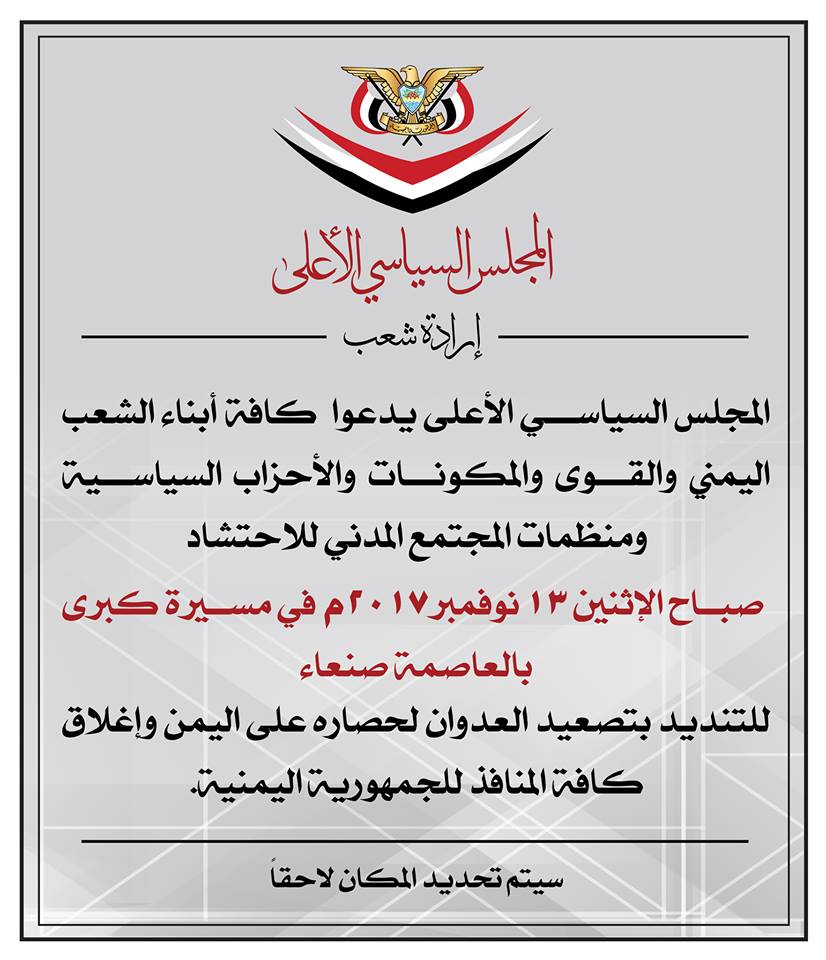 The head of the Yemeni Supreme Revolutionary Committee, Mohammad Ali al-Houthi, called on the Yemeni people to come out for mass rally ,on Monday,which also called by the Supreme Political Council.