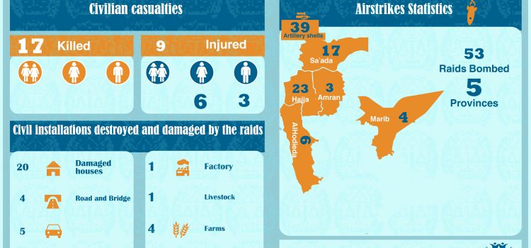 Info. Shows Coalition’s Crimes in Yemen in 29_3_2018 On Apr 2, 2018 Share YemenExtra Violation and Crimes that are committed by the Saudi Arabia and its coalition in 29_3_2018 Continue Reading Share FacebookTwitterGoogle+ReddItWhatsAppPinterestEmailLinkedinTumblrTelegramPrint