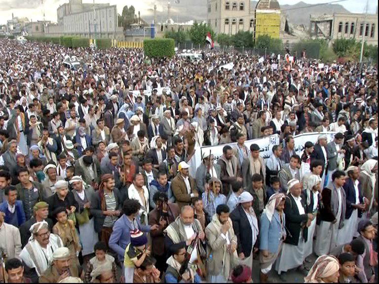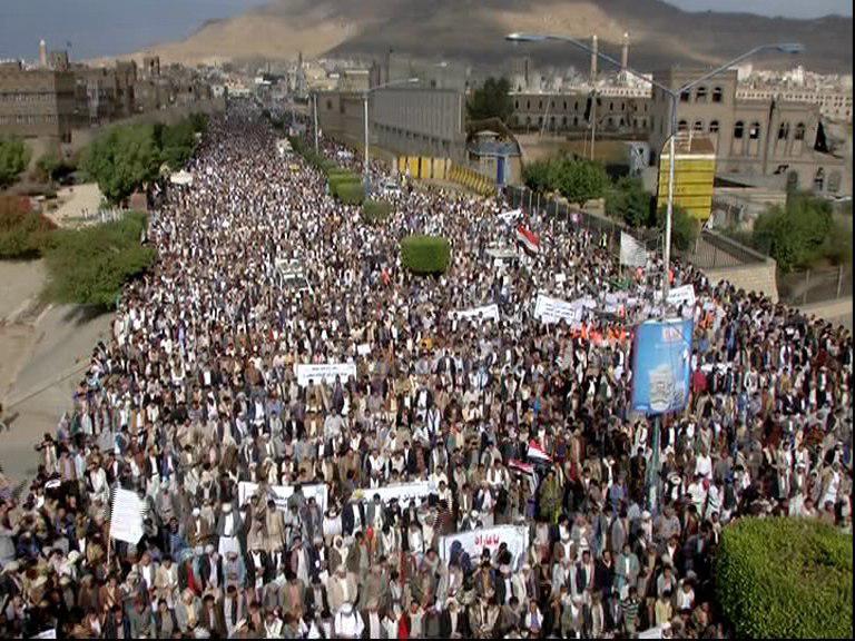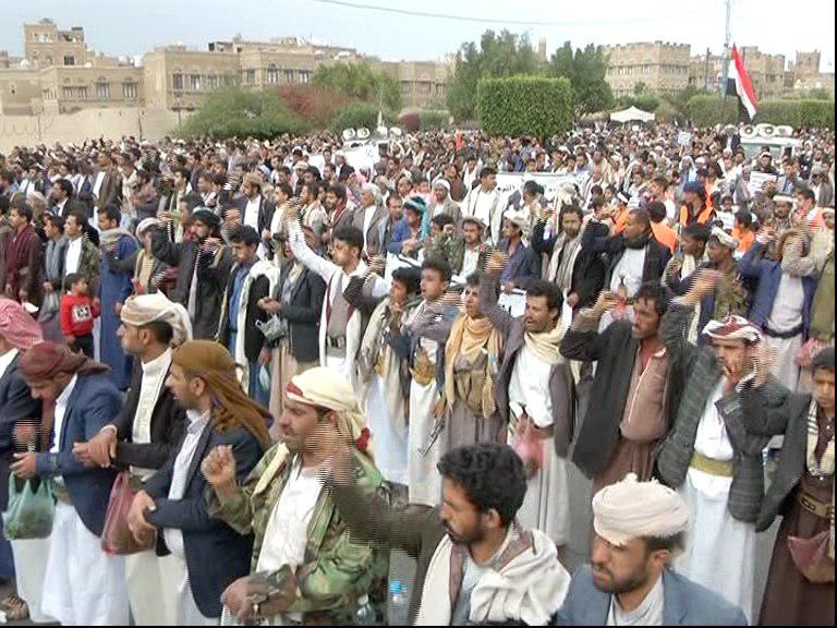 The crowds, participating in the march of “liberating the land for the sake of dignity ” ,declared the public teamwork to the fronts to defend the dignity and liberate the land from the Saudi -led coalition and its paid fighters and avenge the shameful crime committed by the paid fighters which anger all the Yemenis