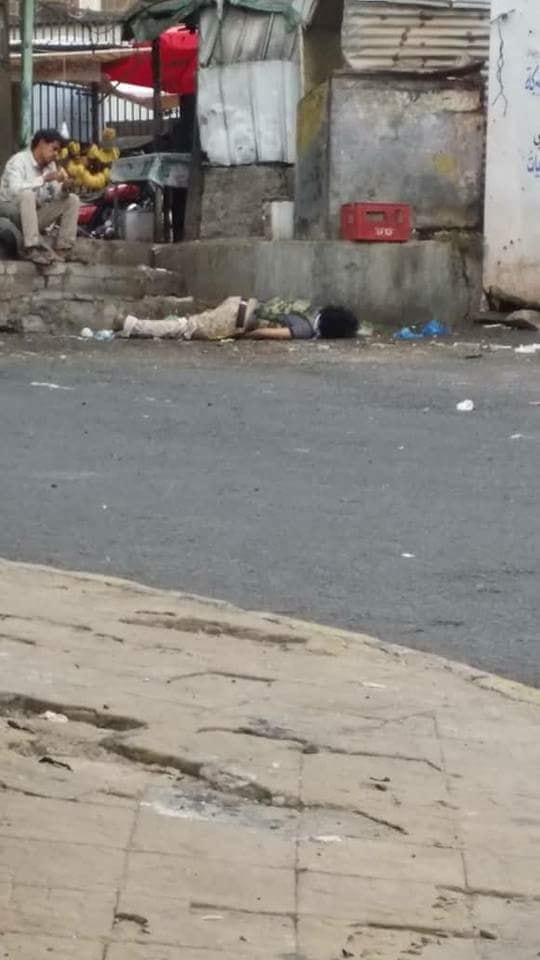 In pictures :battles between the coalition factions , paid fighters in Taiz city,the dead bodies fill the streets