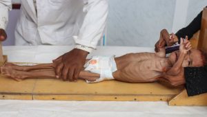 Skeletal child is just one of five million at risk of death in war-torn Yemen