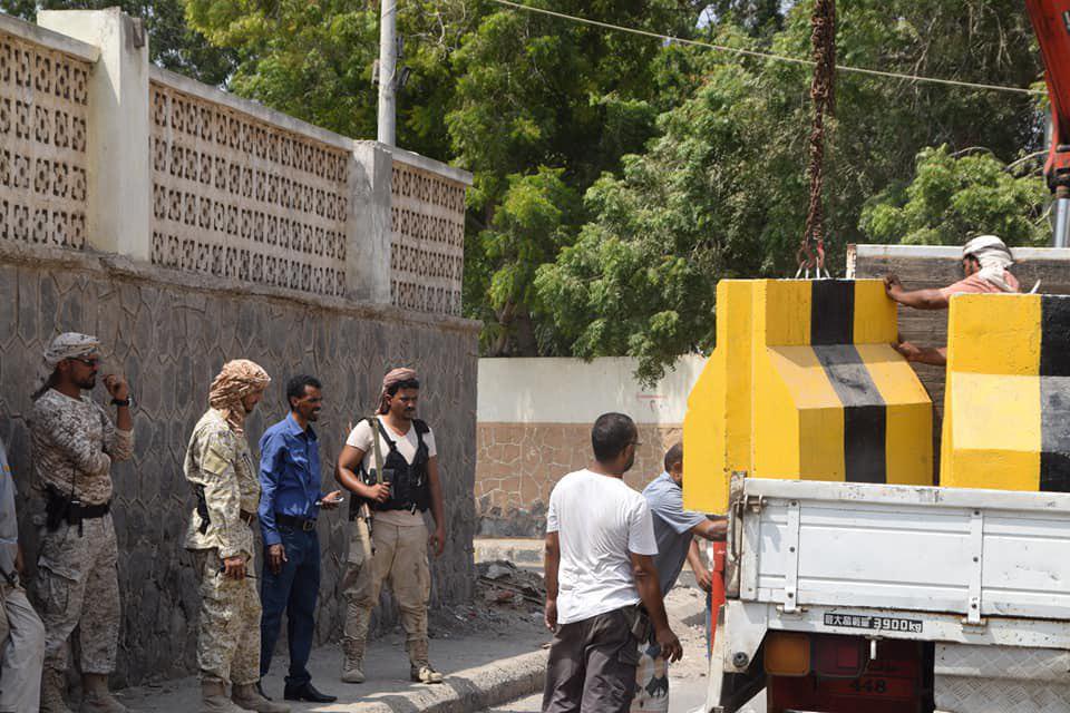 UAE hedges the Office of the UN Envoy in Aden with large concrete ,human chains , as observers ringing the alarm bell ..!