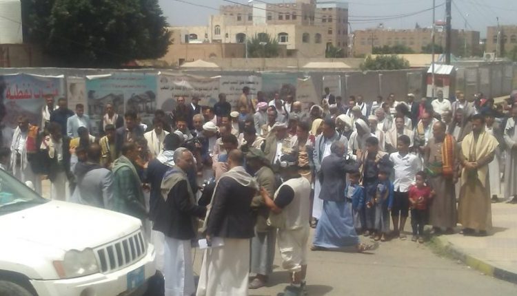 Yemen Petroleum Company employees continued to protest in front of the United Nations Office in the capital Sana’a for the 23rd Friday, titled “Continued seizing of oil vessels is a shame on UN”.