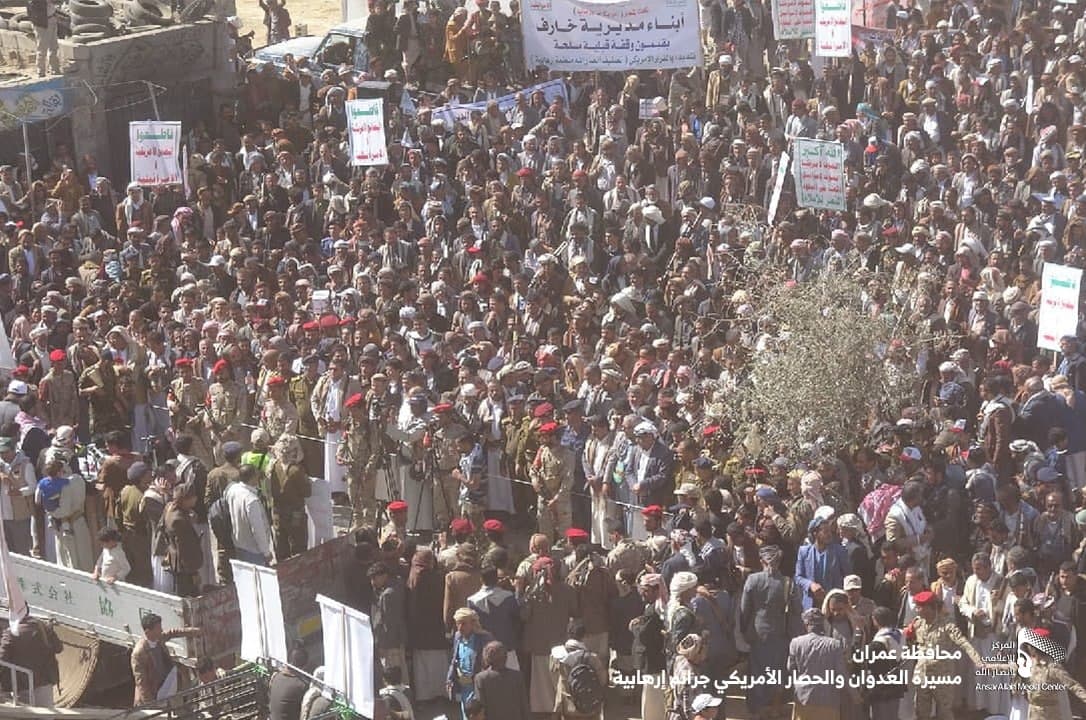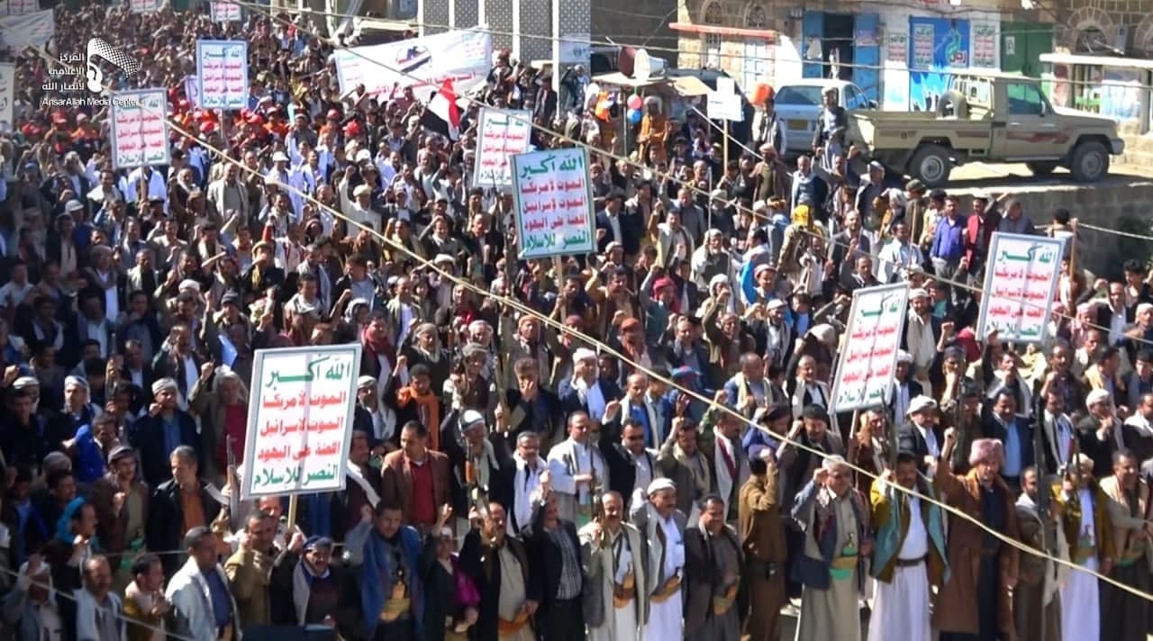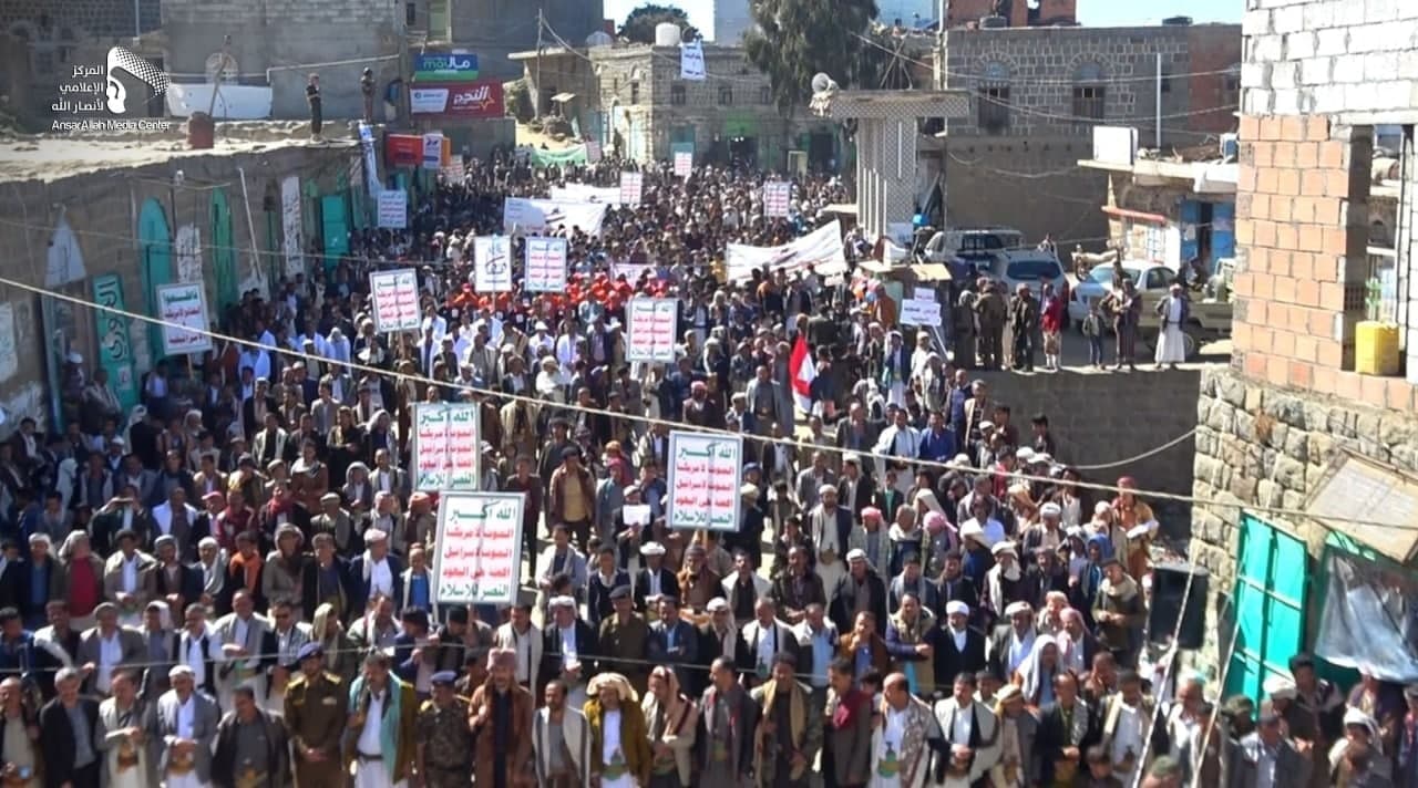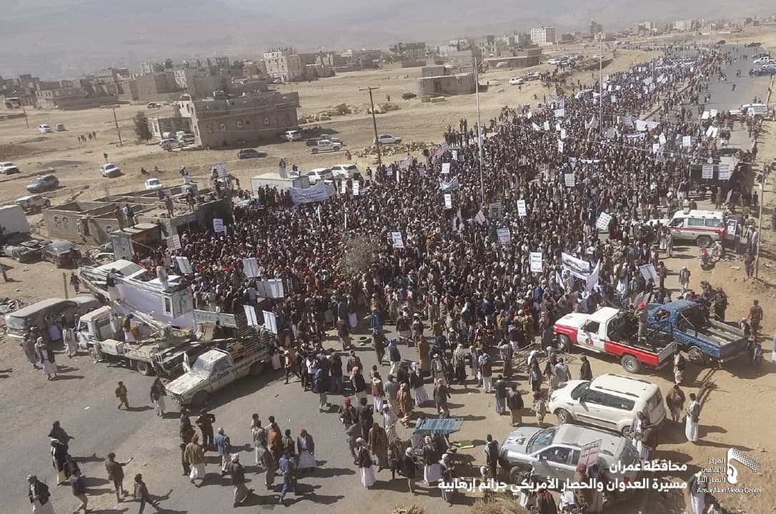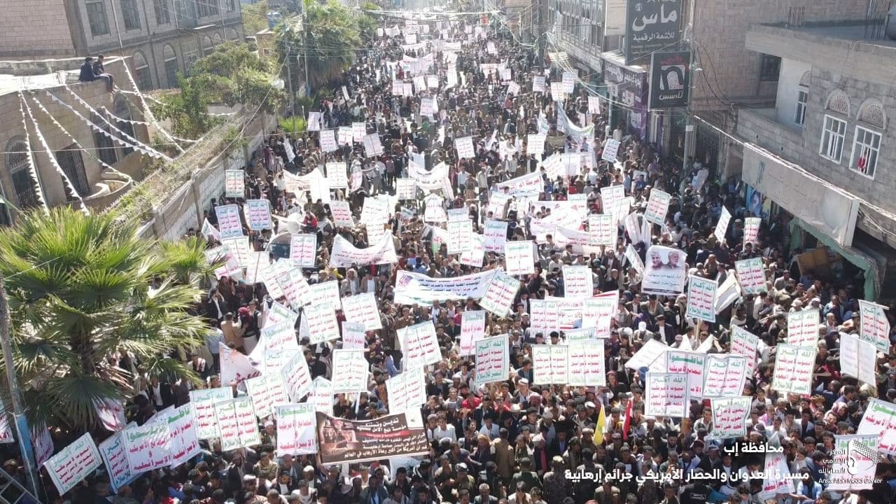 Hundreds of thousands of Yemenis demonstrated today, Monday morning, in a number of 20 massive rallies within 12 governorates, to condemn the crimes and terrorism conducted by the US against the Yemeni people. These rallies named their protests “The blockade and American aggression are terrorist crimes.”