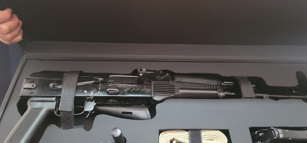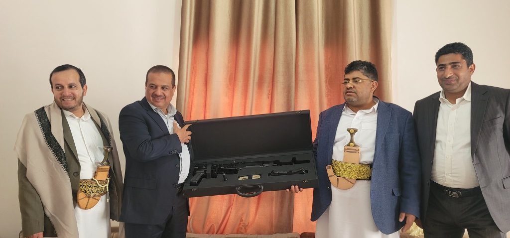 Mohammad Ali al-Houthi, member of the Supreme Political Council, was on Monday gifted a Kalashnikov assault rifle produced domestically in Yemen by the Board of Military Industry.