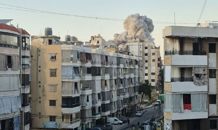 Israeli enemy aircraft bomb building in southern suburb of Beirut