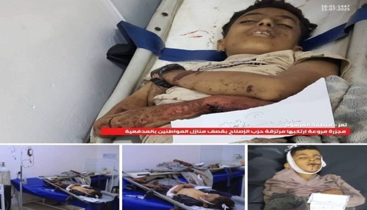 Taiz Human Rights Sector: Emphasized that the crime is a flagrant violation of international law and constitutes a war crime that does not lapse. It warned that the repeated shelling of residential areas is part of a deliberate policy of killing the Yemeni people.