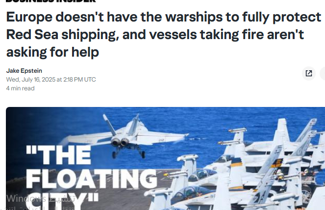 The American newspaper Business Insider has revealed that the European “Aspides” mission in the Red Sea is incapable of protecting merchant vessels due to its limited assets and lack of coordination, relying on just one warship per day. Admiral Gribaris, the mission commander, acknowledged that commercial ships which do not request an escort must transit alone at their own risk, with no guarantee of adequate protection.