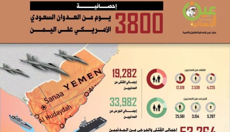 In a grim picture of ongoing crimes, the Eye of Humanity Center for Rights and Development revealed shocking statistics on the Saudi-American-Zionist aggression against the Yemeni people over 3,800 days of bombardment and blockade.
