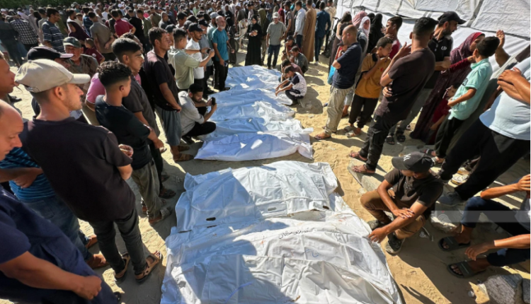 Mawasi Khan Younis: 5 martyrs, including a couple and their child, in a tent for displaced families.