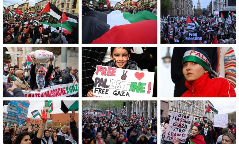 In a scene that reflects the widening circle of global rejection of the Zionist aggression on Gaza, major capitals and cities across the world witnessed massive demonstrations over the past hours, denouncing the genocide waged since October 7. Protesters called for an immediate halt to arms exports to the Israeli entity and the imposition of sanctions.