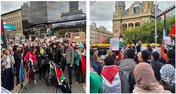 The protest, organized by the Hungarian Peace Circle, was led by human rights activists and political figures, with broad participation from Hungarian citizens, international supporters, members of the Palestinian and Arab communities, and university students. Participants waved Palestinian flags and chanted slogans condemning the aggression and demanding an immediate end to the massacres.