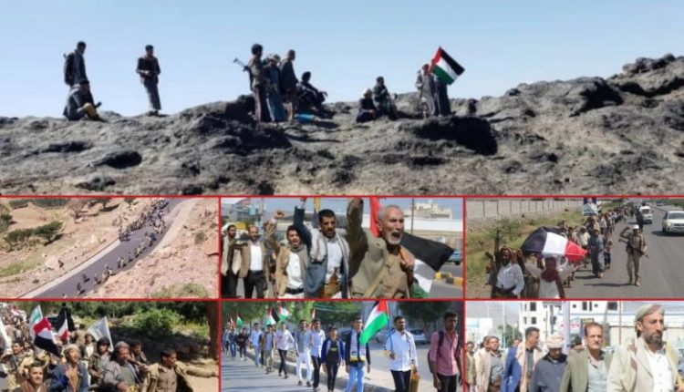 In the capital, Sana’a, particularly in the New Sana’a District, participants took to the streets in armed marches and rallies, waving flags of jihad and loyalty to express unity and solidarity with the Palestinian people amid ongoing Israeli attacks.