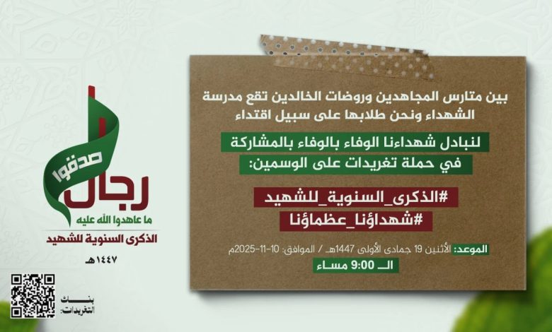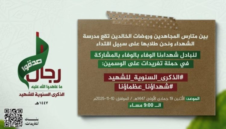 Tonight, Monday at 9:00 PM, a large-scale campaign will launch on the social media platform X (formerly Twitter) to commemorate the Great Martyrs and honor their noble sacrifices—their courage and devotion that safeguarded the nation and built its lasting pride.