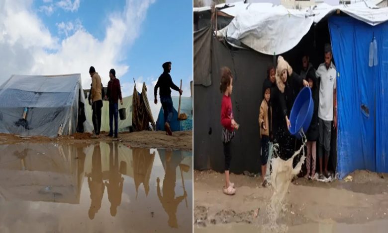 With heavy rainfall sweeping Gaza, displacement tents have turned into swamps of water and mud, threatening the lives of more than 1.5 million Palestinians living in nearly 300,000 worn-out tents.