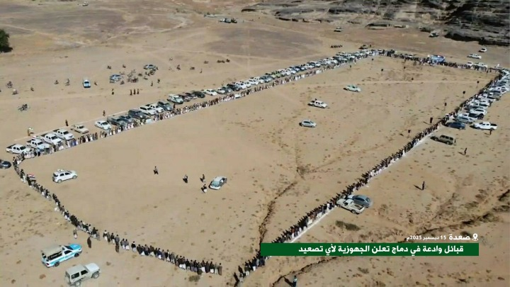 In Saada Governorate, the Wadi‘ah tribes in Dammaj, Al-Safra District, organized a large armed tribal gathering during which they declared general mobilization and a high level of readiness to confront any escalation or future round of conflict. They emphasized the continuation of mobilization, training, and the elevation of combat readiness.