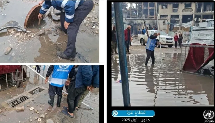 UNRWA reported in a post on its X platform, monitored by the Yemeni News Agency (Saba), that its teams are working to clean and maintain rainwater drainage networks, in addition to providing clean water, sanitation, and hygiene services in shelters and displacement sites, this contributes to reducing the health risks threatening the population, who are already suffering from extremely difficult humanitarian conditions.