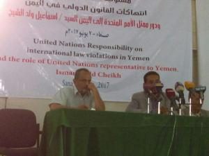 A number of Yemeni human rights activists, journalists and lawyers held a seminar on the responsibility of the United Nations for violations of international law in Yemen and the role of UN Representative to Yemen Ismail Ould Cheikh.